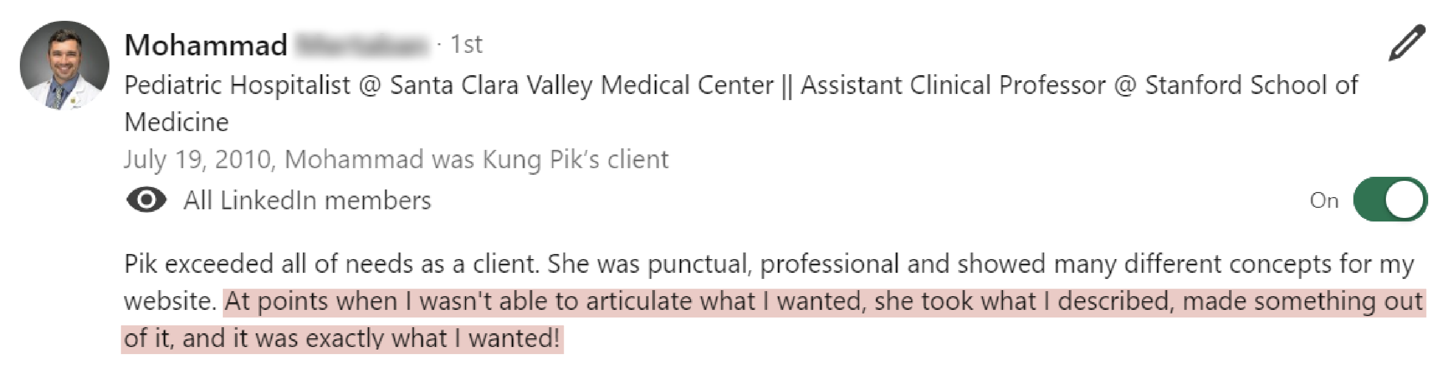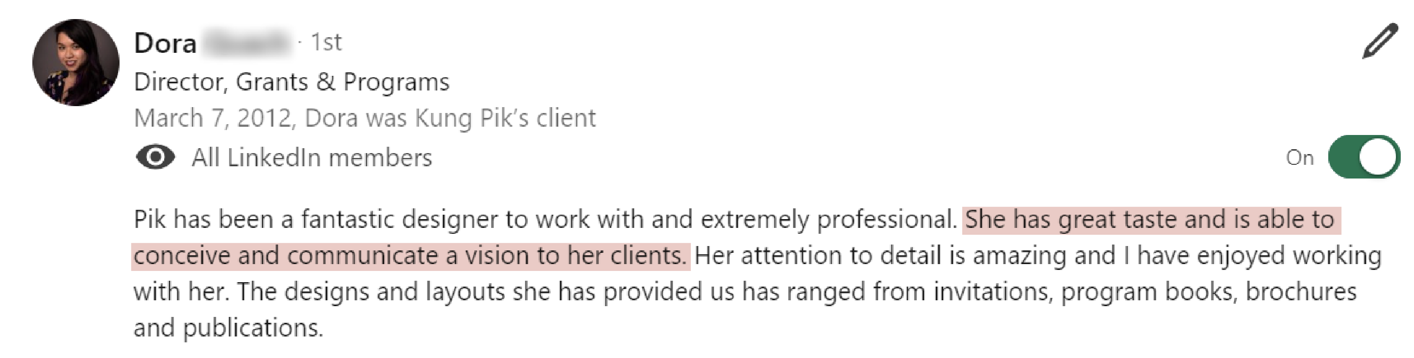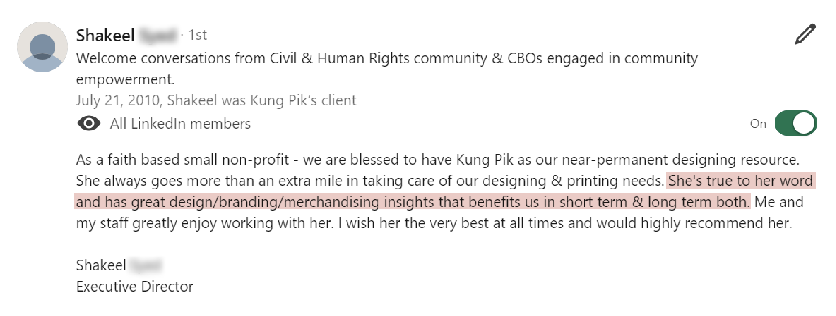The process was intentional and deeply personal, helping me shift from quietly doing the work to here you can edit reviewss confidently owning my role as a thought leader. I’m now able to promote my personal brand with ease, stay aligned with my values, and make decisions that move me toward the opportunities I want most.